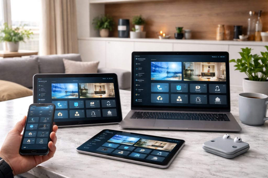 Depuis un smartphone, une tablette, un ordinateur ou parfois une montre connectée, il est possible d’accéder à certaines fonctions de l’installation en quelques clics.